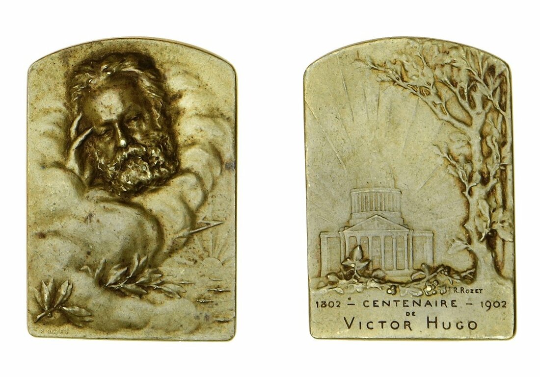 Centenary of Victor Hugo (1802-85), AE Plaquette, 1902, 29 x 40mm. [approx}, very fine (2)