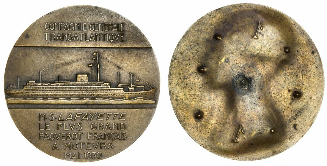 France, General La Fayette, AE Medal, 1930, an artist's uniface striking, by M Delannoy, uniface with only suggestion of final design, rev. ship, 68mm., about extremely fine, scarce