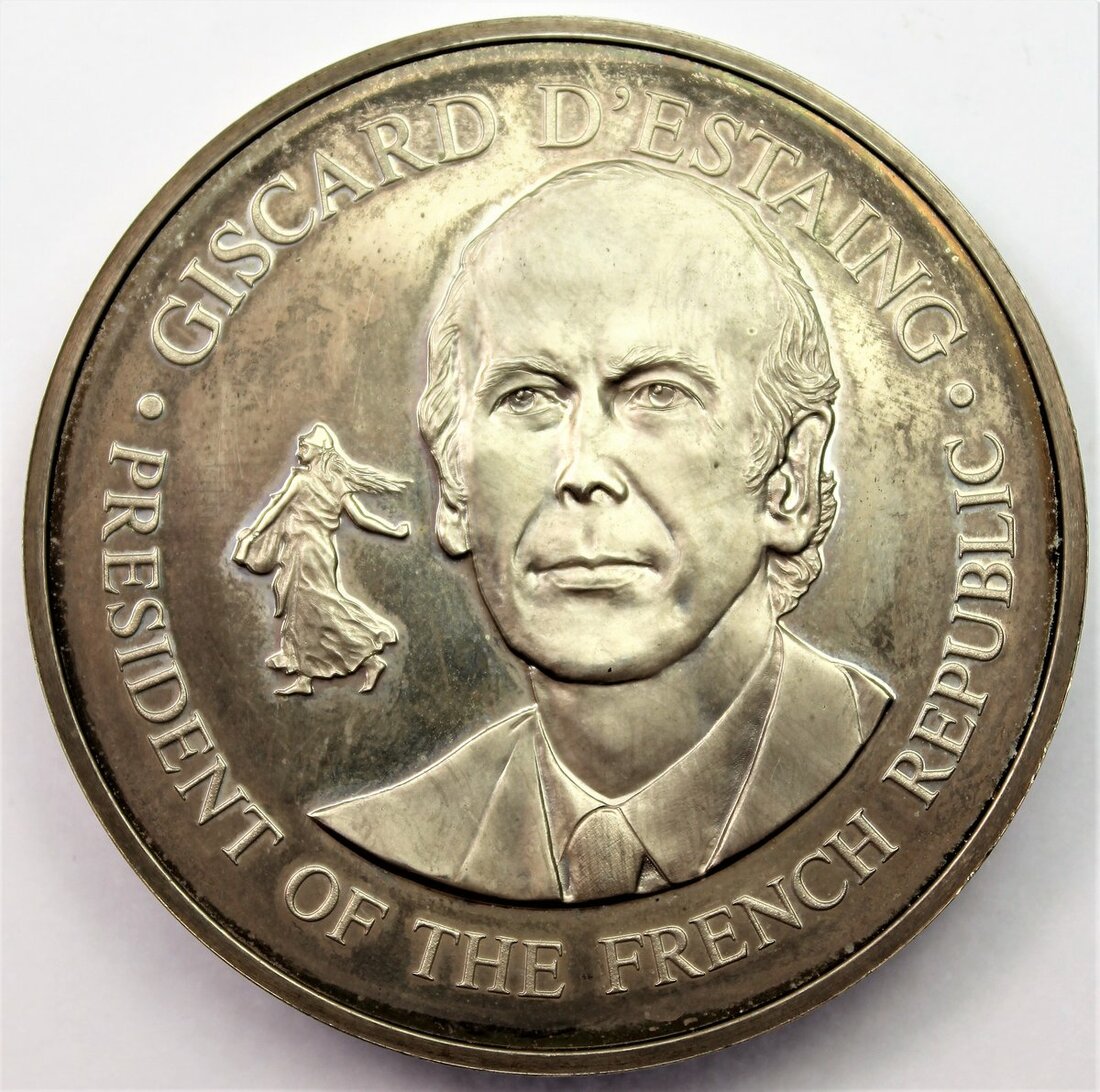 France, Commercial Society for the Study of Foreign Languages, AE Medal, L Merley, stamped BRONZE on edge, 51mm. 68.27g, lightly wiped, otherwise very fine; France, Fifth Republic, Giscard d'Estaing, AR Medal, Bicentennary of the United States, Visit, May 1976, 50.5,mm. 51.83g, stamped ARGENT on edge, light handling marks in otherwise brilliant fields, extremely fine or better; France, Fifth Republic (1958-present), gold Proof 5-Euros, 2012, "Tenth Anniversary of the Euro", brilliant uncirculated, in fitted case of issue, with certificate of authenticity no. 07727