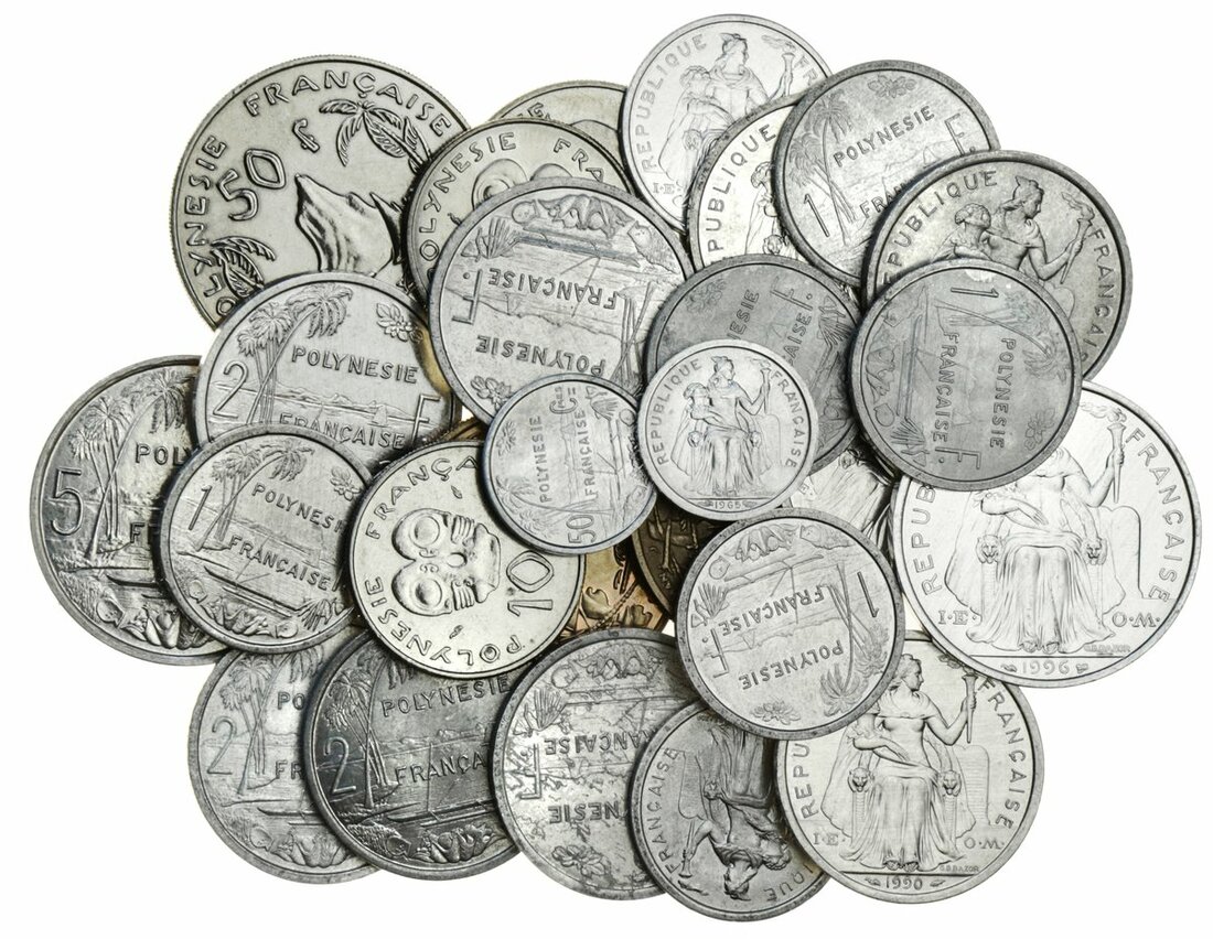 French Polynesia, Overseas Protectivity, Pattern 10-Francs, in nickel, ESSAI in obverse field (Lecompte 67; KM E1), brilliant uncirculated, 1,700 struck; Mixed coins [21], including: 100-Francs [2], 1982; another, 1996, Proof (KM 14); Proof 50-Francs, 1996 (KM 13); 20-Francs, 1996 (KM 9), 10-Francs [2], 1996 (KM 8); 5-Francs, 1988 (KM 12); also, 2-Francs [7], 1965; 1979; 1983-84; 1990-91; 1996 (KM 3, 10); Francs [7], 1965; 1975; 1979; 1982; 1983; 1989; 1996 (KM 2, 11); 50-Centimes, 1965 (KM 1), generally about extremely fine to about uncirculated [22]