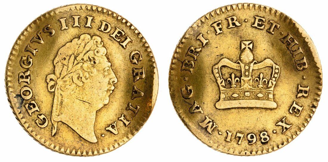 George III (1760-1820), Third-Guinea, 1798, Type 1, edge obliquely milled, 12h (Murdoch III, -; Schneider II, -; MCE 450; Spink 3738), creased into a 'love token', otherwise fine, the reverse better