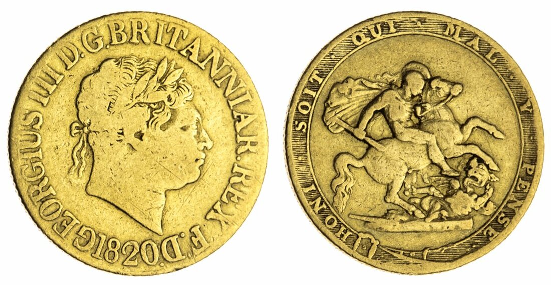 (g) VG10 | George III (1760-1820), Sovereign, 1820, 'Closed 2', laureate head right, rev. St George and dragon, edge milled, 6h (Marsh 4; Spink 3785C), bagmarked and rubbed, fine, in NGC holder, graded VG10 (Cert. #6295135-001)