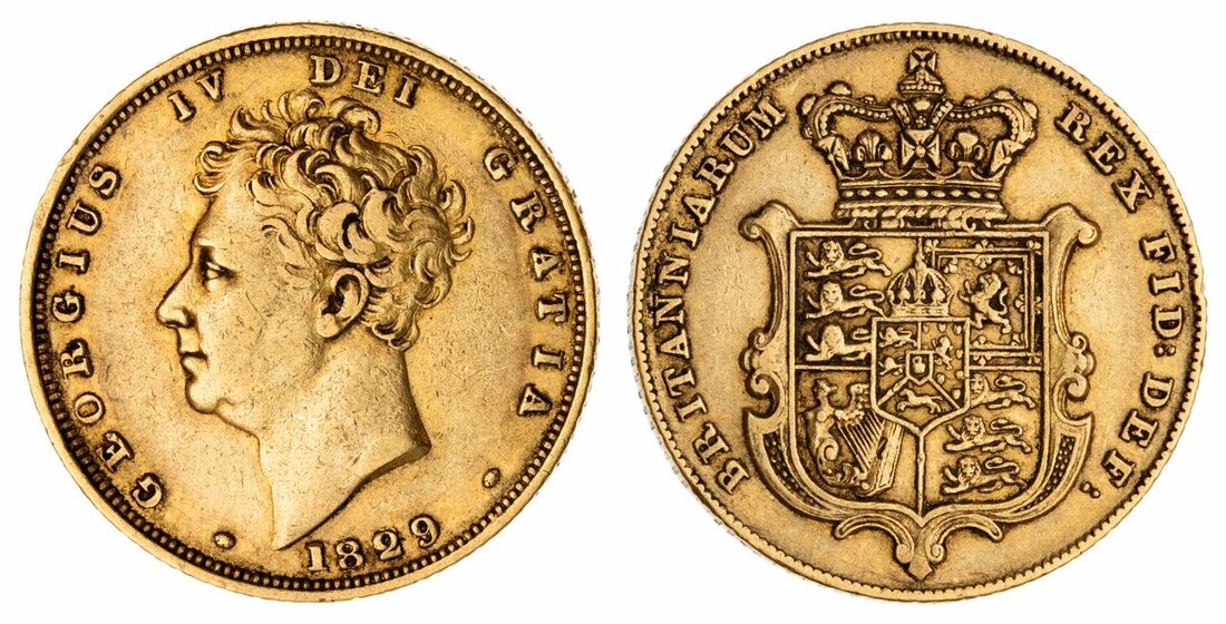 (g) George IV (1820-1830), Sovereign, 1829, Type 2, bare head left, rev. crowned garnished shield, edge milled, 7.98g, 7h (Marsh 14; MCE 480; Stratos 128; Spink 3801), very fine