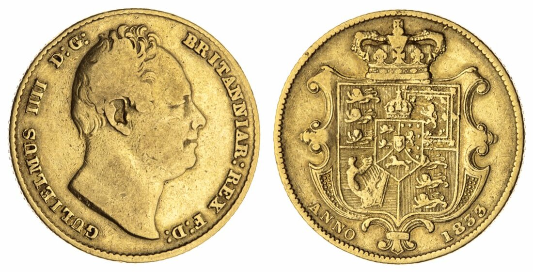 William IV (1830-1837), Sovereign, 1833, barehead right, rev. crowned shield, milled edge, 5h, 7.81g (Marsh 18; Spink 3829B), lightly bagmarked and rubbed, fine, in NGC holder, graded VF Details ~ Cleaned (Cert. #6295135-004)