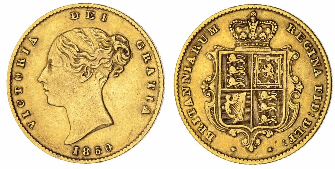 (g) Victoria (1837-1901), Half-Sovereign, 1850, first young head left, rev. crowned shield, edge milled, 7h (Marsh 424; Spink 3859), the legends re-entered, somewhat rubbed, otherwise almost very fine / good fine, a semi-key date in series