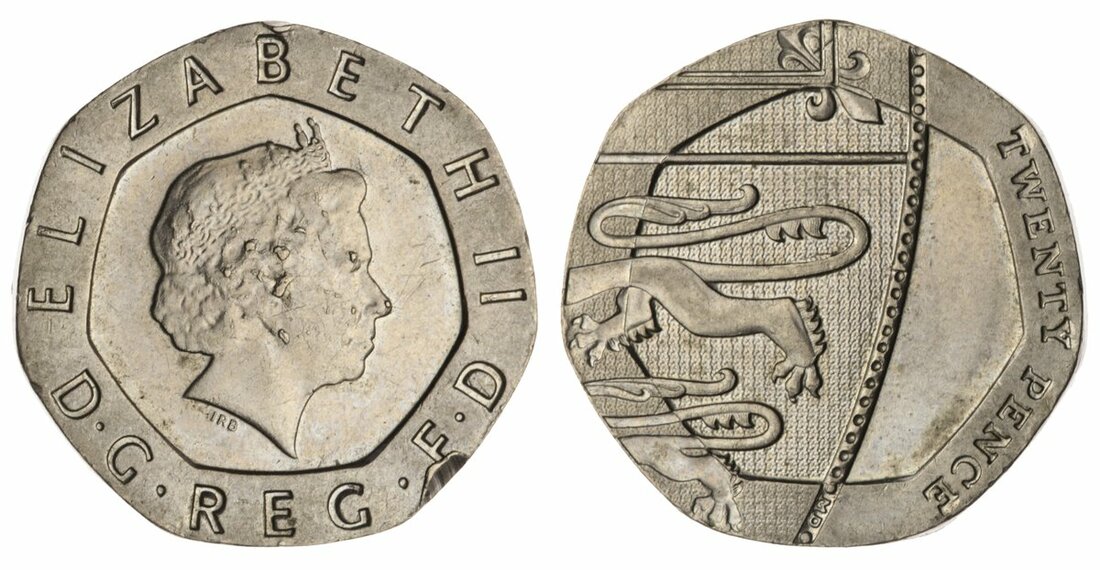 MS64 | The Undated Mule | Elizabeth II (1952-), Undated Twenty Pence, [2008], edge plain, 4.92g, 12h (S.G4A [4631A]), the first currency coin struck without a date for circulation in Britain since the reign of Charles II, a famous modern rarity, dent to obverse edge at 12 and 5 o'clock, otherwise much as struck, in NGC holder, graded MS64 (Cert. #6295118-006)