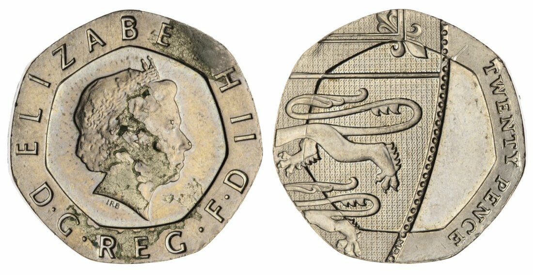 MS63 | The Undated Mule | Elizabeth II (1952-), Undated Twenty Pence, [2008], edge plain, 5.01g, 12h (S.G4A [4631A]), the first currency coin struck without a date for circulation in Britain since the reign of Charles II, a famous modern rarity, residue to obverse, otherwise much as struck, in NGC holder, graded MS64 (Cert. #6295117-006)
