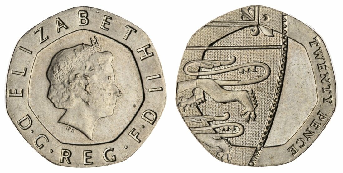 MS62 | The Undated Mule | Elizabeth II (1952-), Undated Twenty Pence, [2008], edge plain, 5.05g, 12h (S.G4A [4631A]), the first currency coin struck without a date for circulation in Britain since the reign of Charles II, a famous modern rarity, patch of verdigris to Y in TWENTY, otherwise much as struck, in NGC holder, graded MS62 (Cert. #6295117-003)
