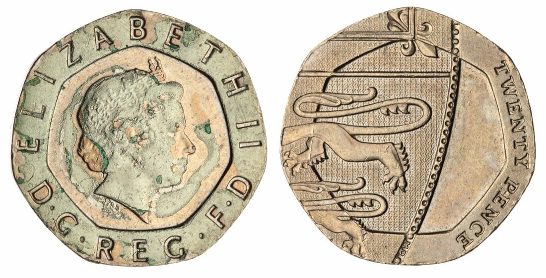 MS61 | The Undated Mule | Elizabeth II (1952-), Undated Twenty Pence, [2008], edge plain, 4.99g, 12h (S.G4A [4631A]), the first currency coin struck without a date for circulation in Britain since the reign of Charles II, a famous modern rarity, green depositories to obverse, otherwise much as struck, in NGC holder, graded MS61 (Cert. #6295118-018)