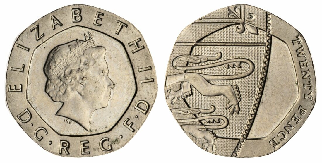 Following the redesign of the standard circulating coinage for Britain in 2008, the date was moved from the reverse of the Twenty Pence design to the obverse. Inadventently the old obverse was muled with the new reverse design by Matthew Dent to create the first British coin struck for circulation that bore no date in over 300 years. It is not known how many were released into circulation