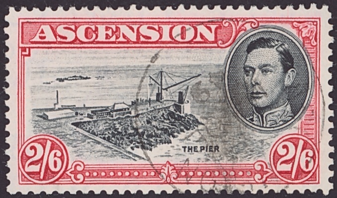 1938-53 perf. 13 2/6d. black and deep carmine, variety cut mast and railings, used by slightly smudged c.d.s.; rare. S.G. 45cb, £3,000