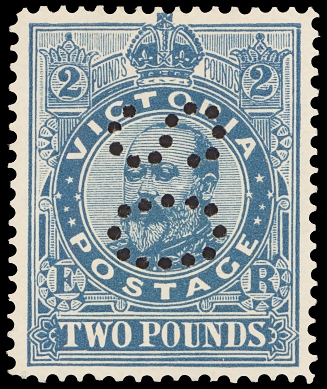 1906 perf 12½, £2 dull blue perforated "OS" sideways, fresh mint. Rare, most of the quantity produced were never used and subsequently destroyed. BW V132b