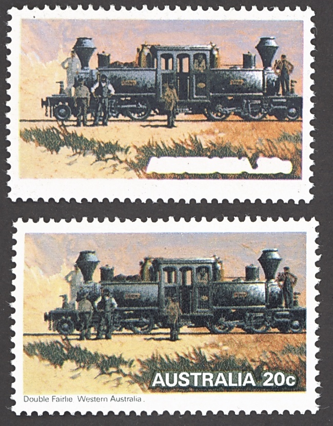 1979 Steam Railways 20c. variety grey-green (face value and inscription) omitted, fine unmounted mint, only fifteen examples know, offered with normal for comparison. S.G. 715a, £2,250