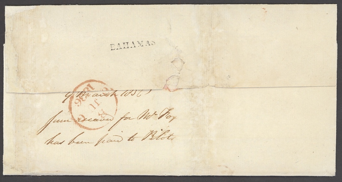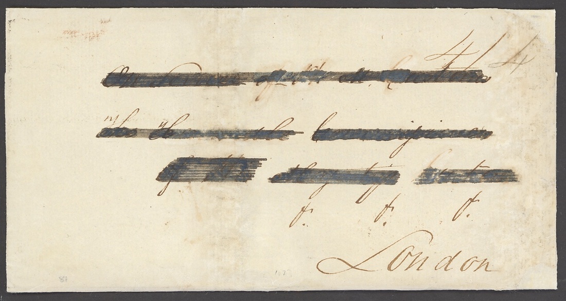 1836 (6 July) entire to London (address deleted), rated "4/4" and showing, on reverse, a good strike of straight-line