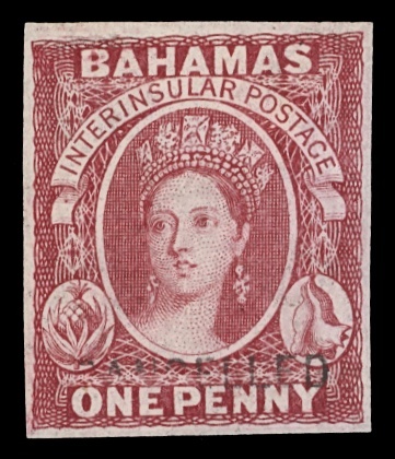 1863-77 CC 1d. carmine-lake imperforate plate proof handstamped "