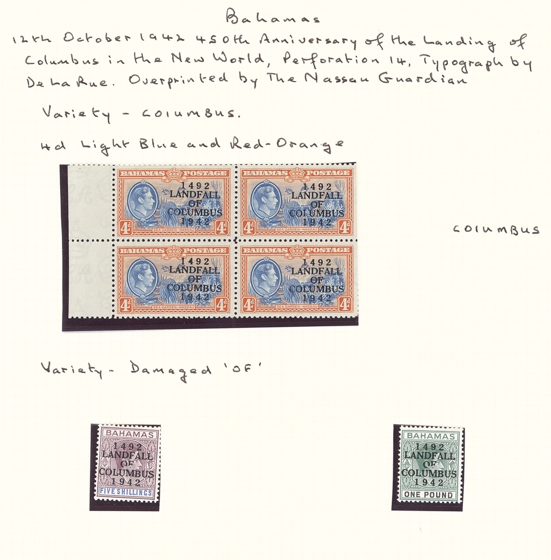 1942 Landfall of Columbus 4d. light blue and red-orange block of four from the left of the sheet [R.5/2] variety