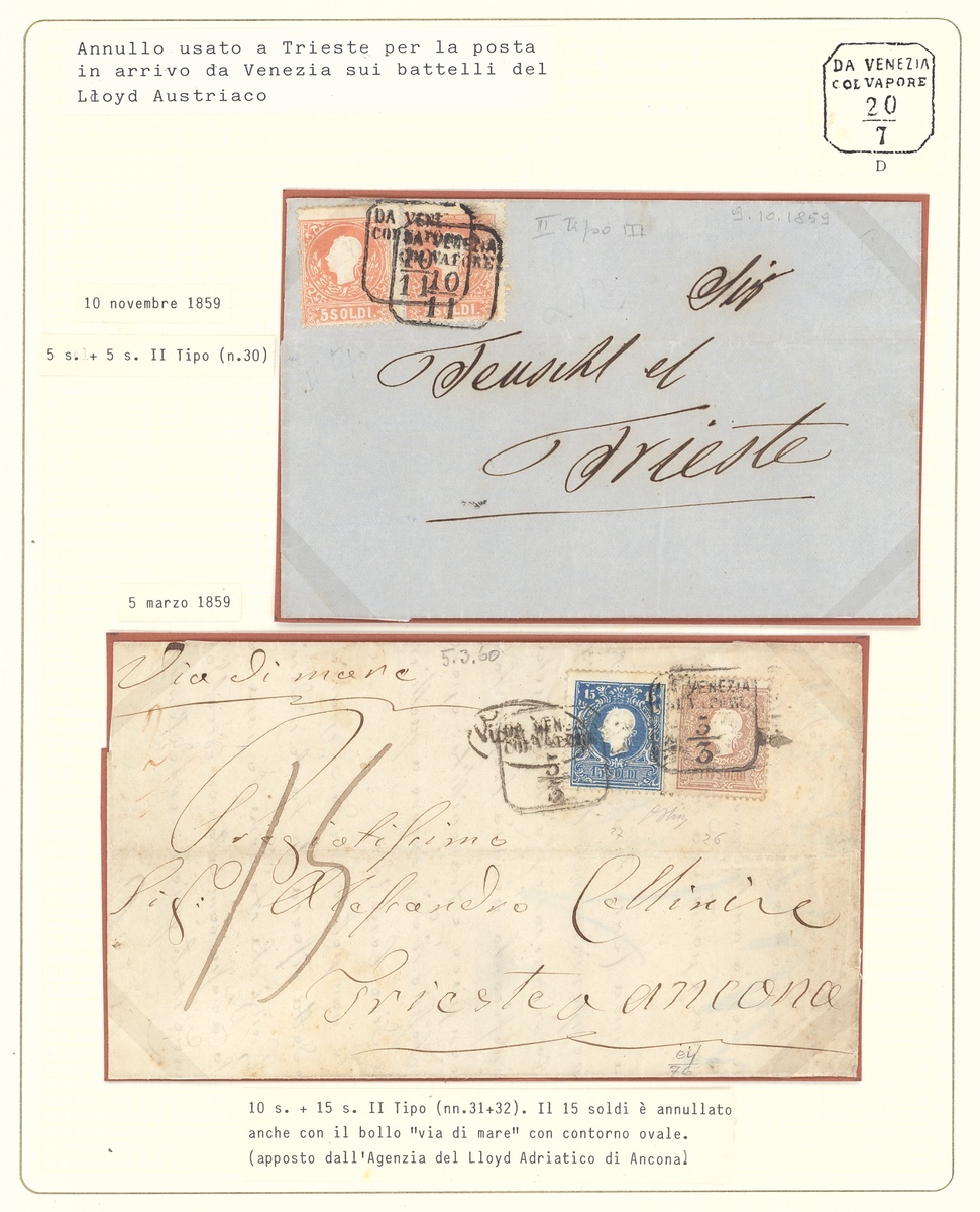 1854-60 "Steamship" cancel postal history selection (8) including Lombardy Venetia 1859 5s. pair cancelled by "