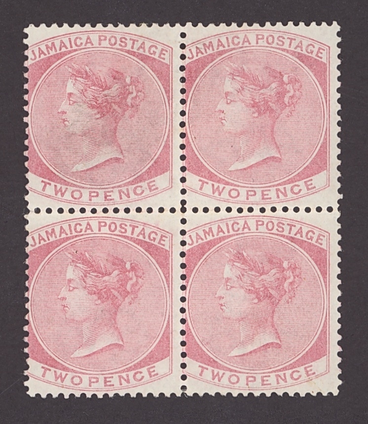 1870-83 CC 2d. rose block of four with watermark inverted, unused with part original gum, two very lightly mounted. A scarce multiple. S.G. 9w, £720+