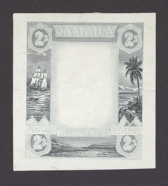 1919-21 Pictorial 2/- die proof showing incomplete design with lettering and value tablets, etc. purely outlined, on glazed paper (33x38mm.); very fine