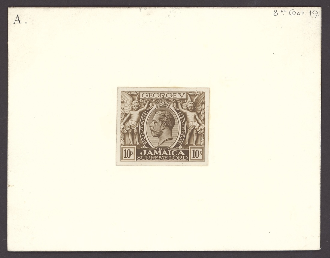 1919-21 Pictorial 10s. photographic type essay in brown in a horizontal rectangular design close to that issued, stamp-size on card (90x115mm.) lettered "A" and dated "8th. Oct. 18"