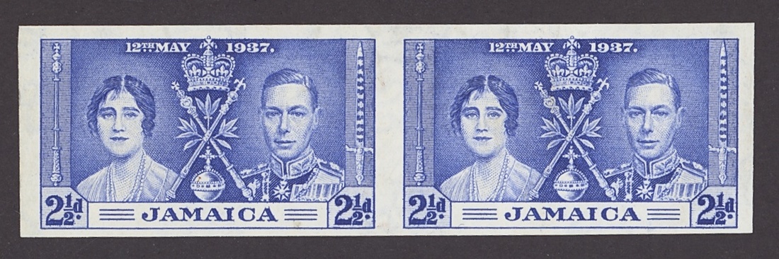1937 Coronation 2½d. bright blue horizontal pair, variety imperforate, fresh mint. Very rare.