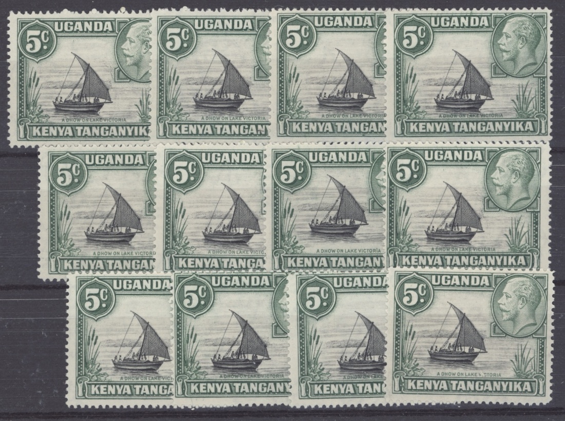 1935-37 5c. black and green with rope joined to sail, twelve unmounted mint examples; a little gum toned. S.G. 111a, £504