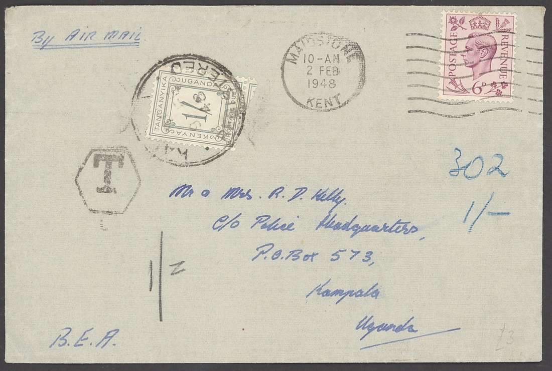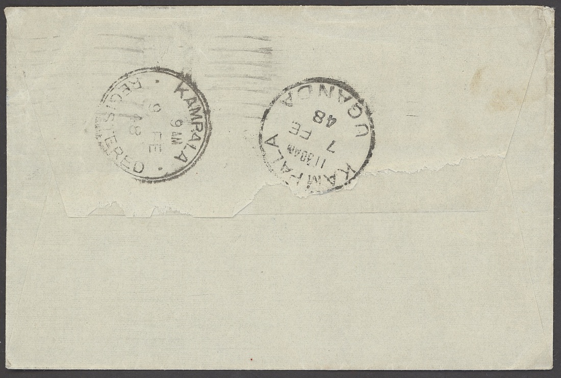 1948 (2 Feb.) envelope from Maidstone to Kampala bearing 6d., upon arrival with framed "