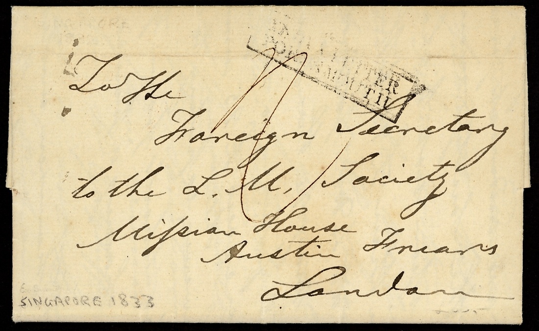 1832 (20 July) missionary entire letter to London, rated "1/-", showing fair to fine framed