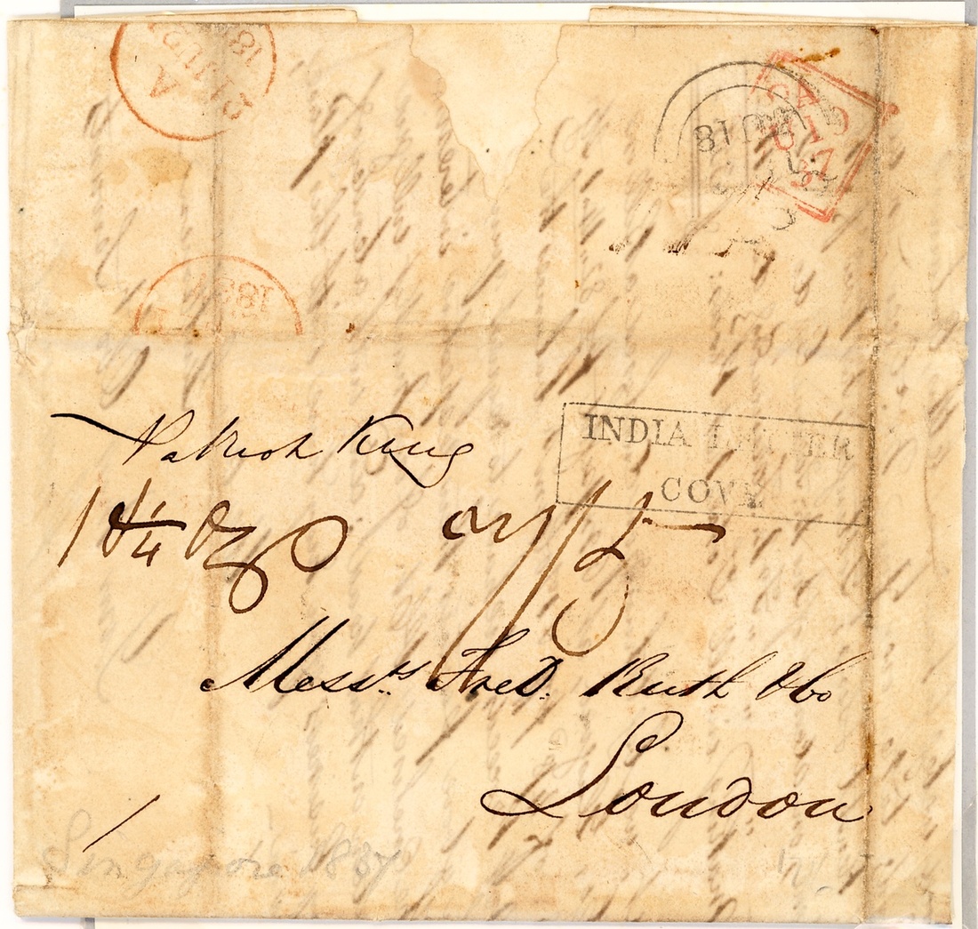 1837 (16 Feb.) entire letter to London, marked "1¼oz", rated "7/5", showing fair to fine framed