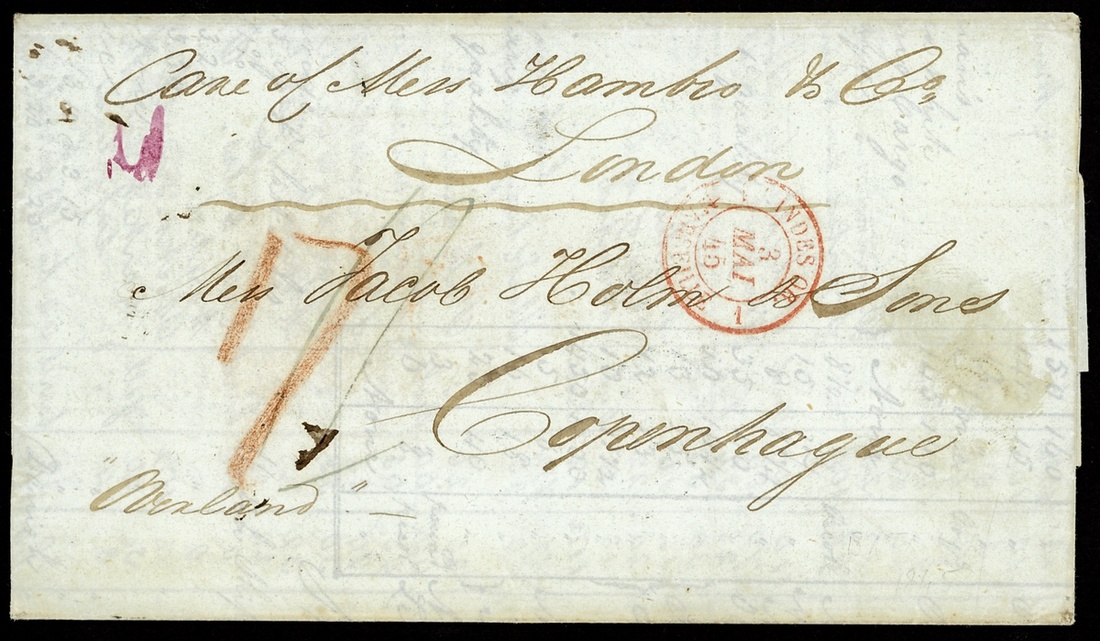 1845 (25 Feb.) prices current from Batavia to Copenhagen, marked "Care of Mess. Hambro & Co London" and showing, on reverse,