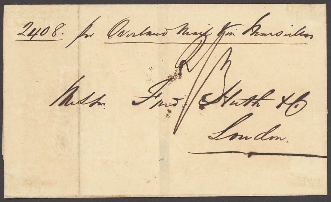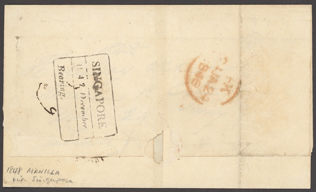 1848 (18 Oct.) entire docketed from Manila ex the Huth correspondence to London, marked "Per Overland Mail via Marseilles", rated "2/3" and showing, on reverse, fine framed