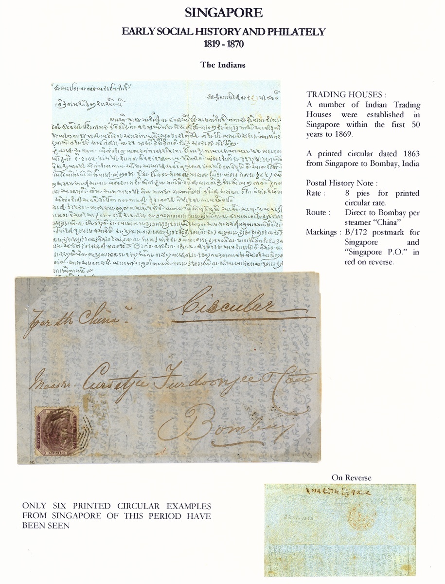 1863 printed circular to Bombay, marked "pr Str China" and "Circular", bearing 1860 8p. tied by "B/172" obliterator and showing, on reverse,