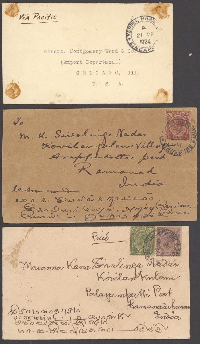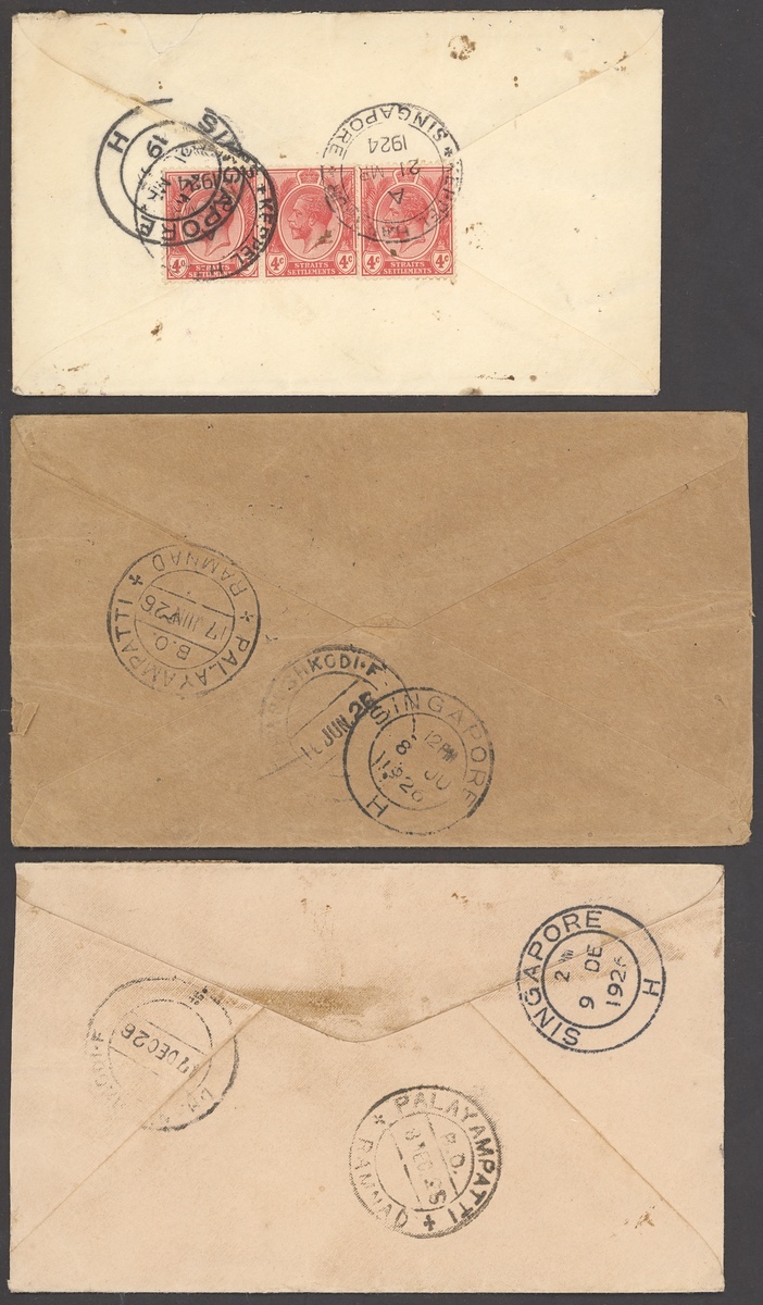 1924 (21 Mar.) envelope to USA franked at 12c., 1926 ( 8 June and 9 Dec.) envelopes to India franked at 6c. and 1927 (30 June) envelope to USA franked at 12c., all cancelled by