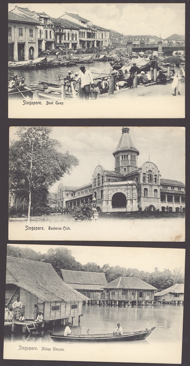 A group (20, three used, one with stamp removed) published by Wilson & Co, Orchard Road, Singapore (various series), pictures include Boat Quay, Botanical Gardens, Cricket Club, Government House, Johnston's Pier, Keppel Harbour and Teutonia Club; minor duplication, mostly fine