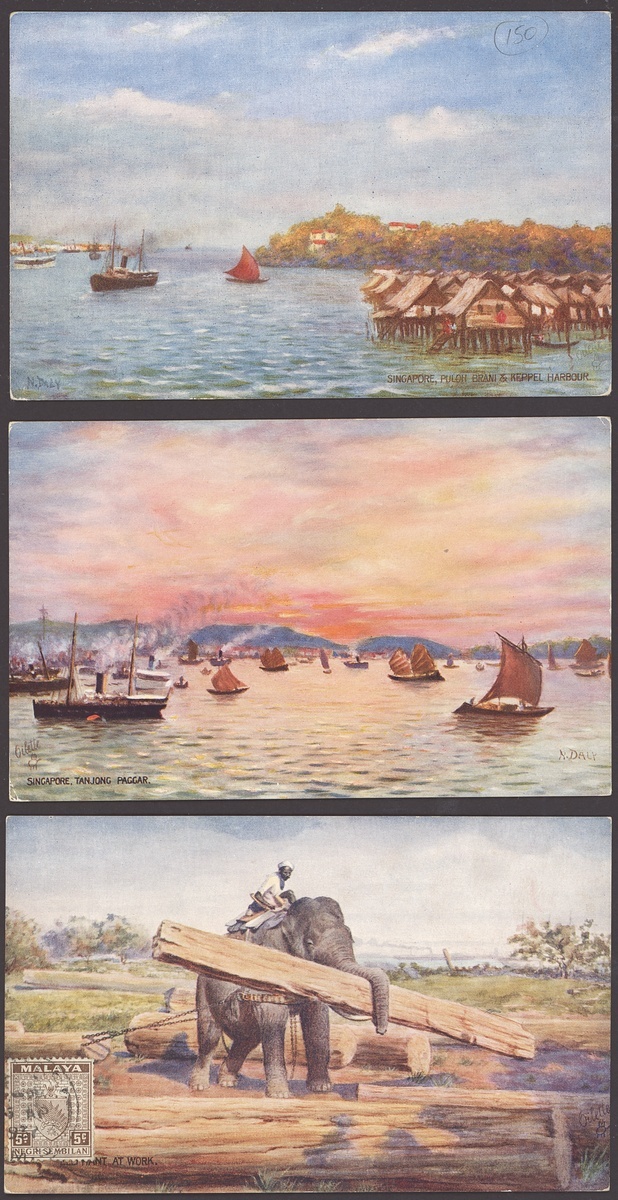 A group (13, one used) of Raphael Tuck & Sons comprising "Oilette" (5, three different series), "Art Collotype" published by Kim & Co., Singapore (3, one duplicated), "Sepia" published by John Little & Co., Singapore, "Sepia" published by C.A. Ribeiro & Co., Singapore and Penang (2), "Sepia" published by G.H. Kiat Co., Singapore (used) and one other; mostly fine