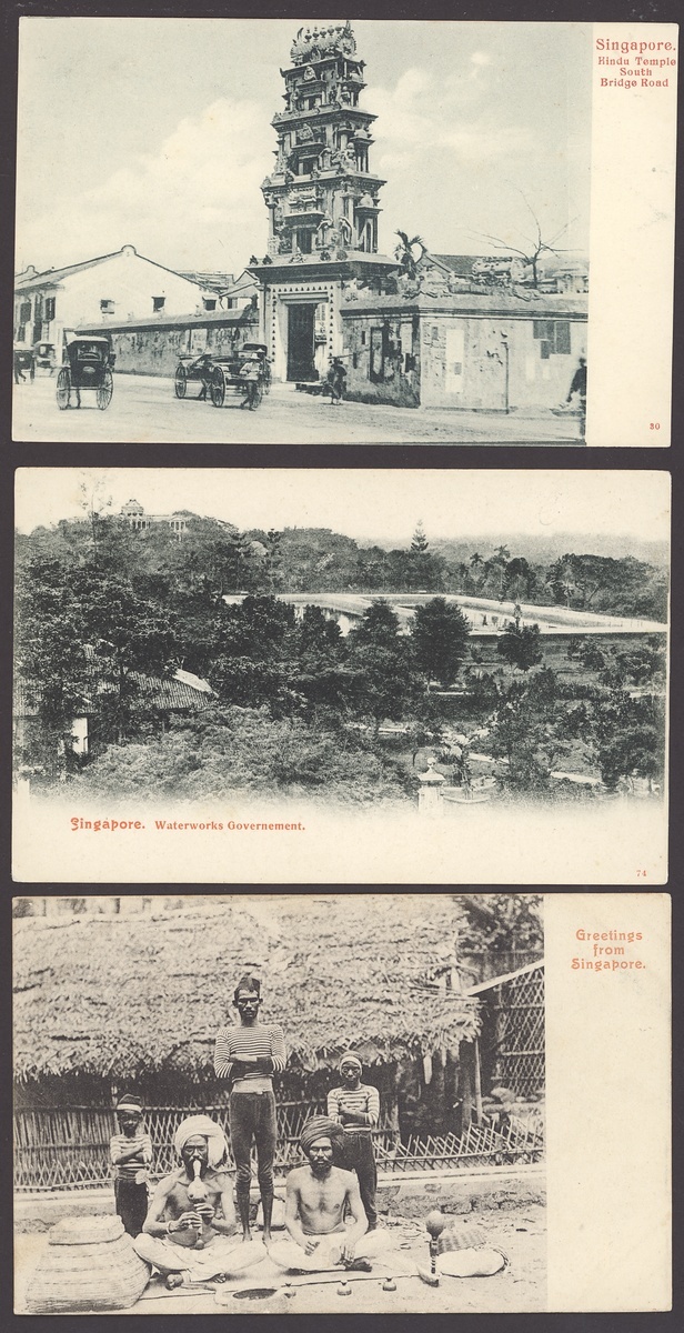 A group (62, twenty-eight used, six with stamp removed) with the same, or very similar, legend with "Etablissements du Detroit" in second line (various series), pictures include Battery Road, Boat Quay, Botanical Gardens, Collyer Quay, Court House, Entrance to New Harbour, General Post Office, Government House, Hong Kong and Shanghai Bank, Raffles Institution, Raffles Museum and Library, Raffles Square, St. Andrews Cathedral and Raffles Monument and South Bridge Road; some slight duplication, a few with faults though many fine