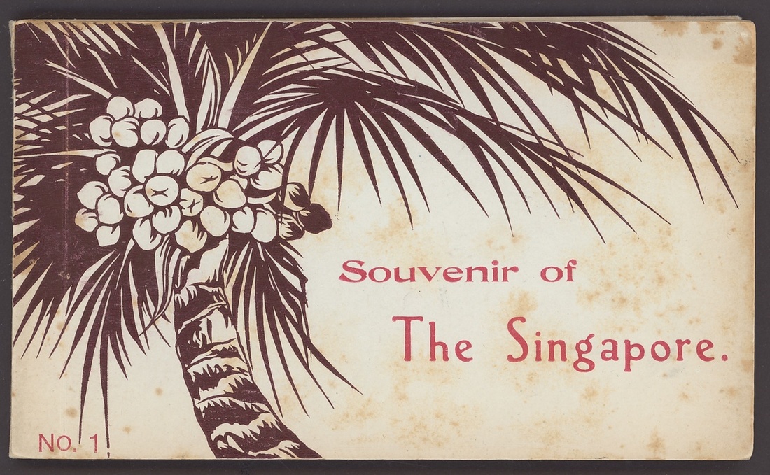 "Souvenir of/The Singapore" No. 1 booklet published by Nakajima & Co. containing twelve cards including pictures of Beach Road, Anderson Bridge, St. Joseph's Institute, Raffles Square, Central Park Station, Raffles Hotel and Victoria Memorial Hall; some staining to covers