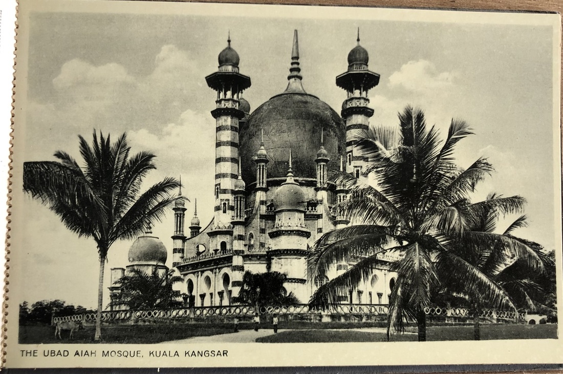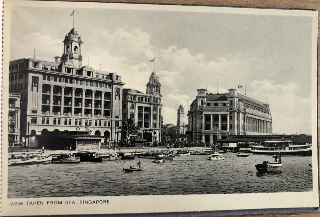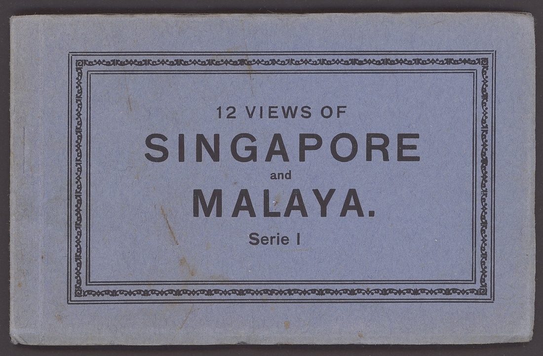 "12 Views of Singapore and Malaya, Serie I" booklet with black on blue cover by unknown publisher, one card missing, pictures include Collyer Quay, Ubad Aiah Mosque Kuala Kangsar, Boat Quay and Town Hall; condition generally fine