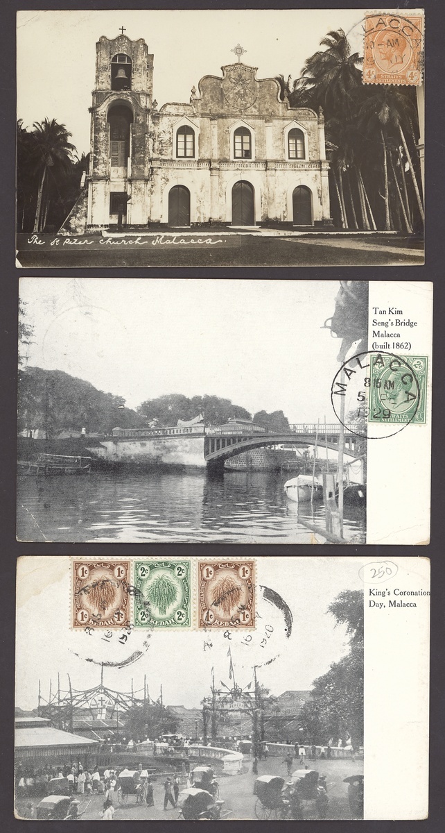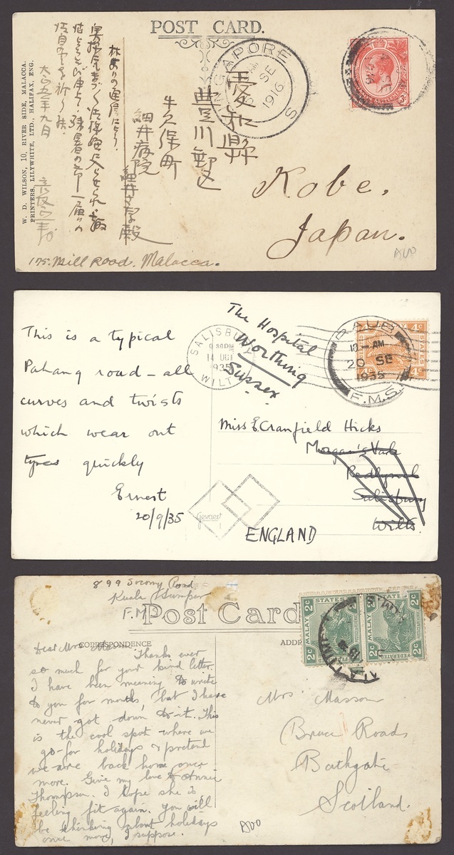A range of picture postcards (74, thirty-two used, one with stamp removed), many photographic and the majority showing rural scenes, nine with views of Malacca and six of Pahang; condition mixed