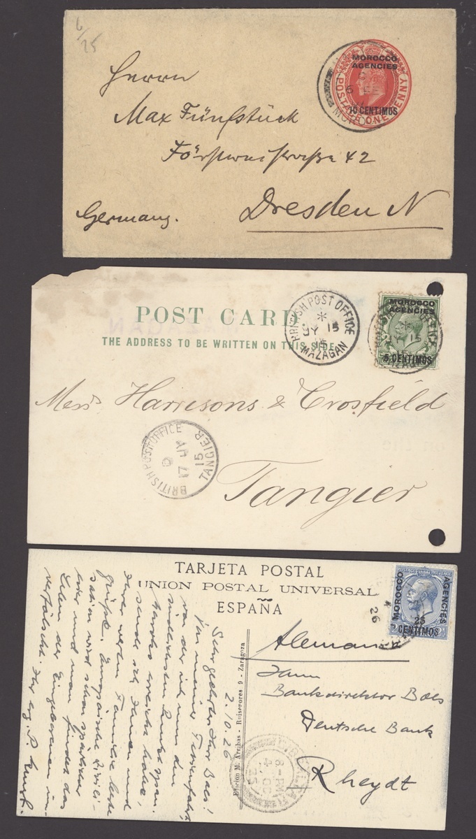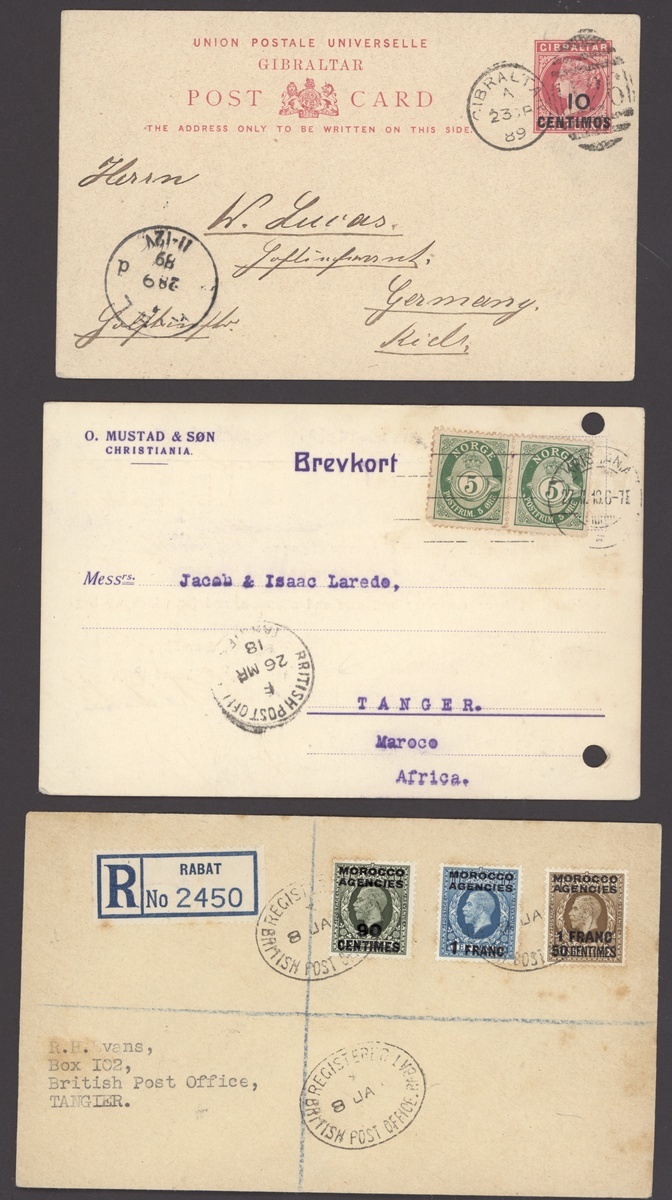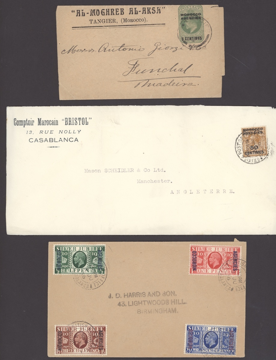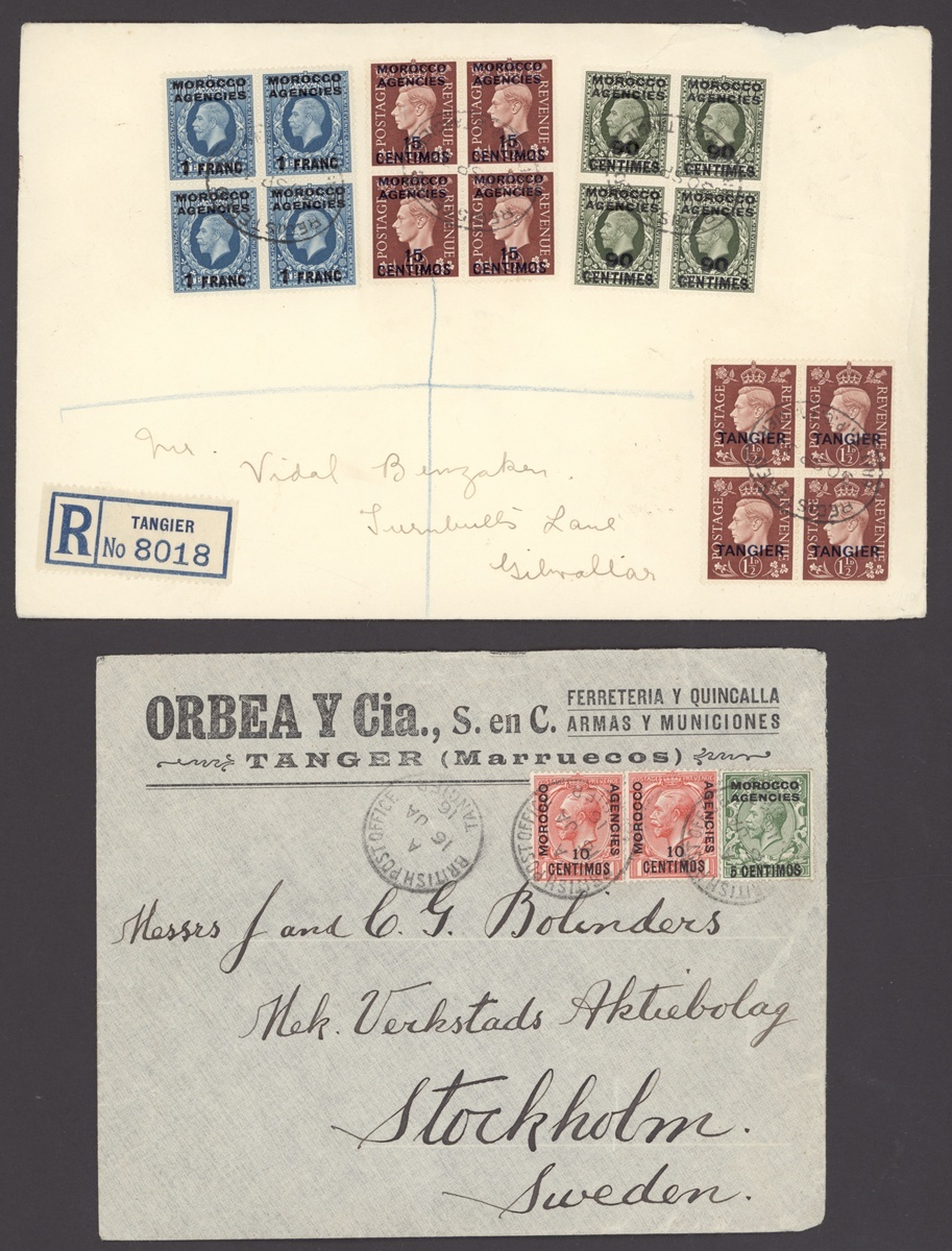 1889-1957 miscellaneous range of covers (24) bearing a variety of values, the majority from Tangier, 1915 registered letter receipt from Casablanca with oval-framed "