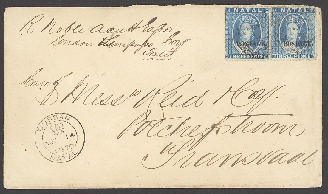 1870 (14 Nov.) envelope from Durban to Potchefstroom, bearing 1869 "