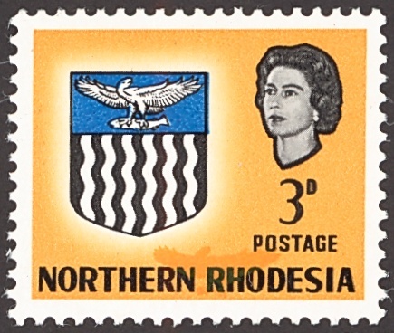 1963 Arms 3d. yellow with eagle misplaced 12mm. to foot and 5mm. to right resulting in eagle centred over