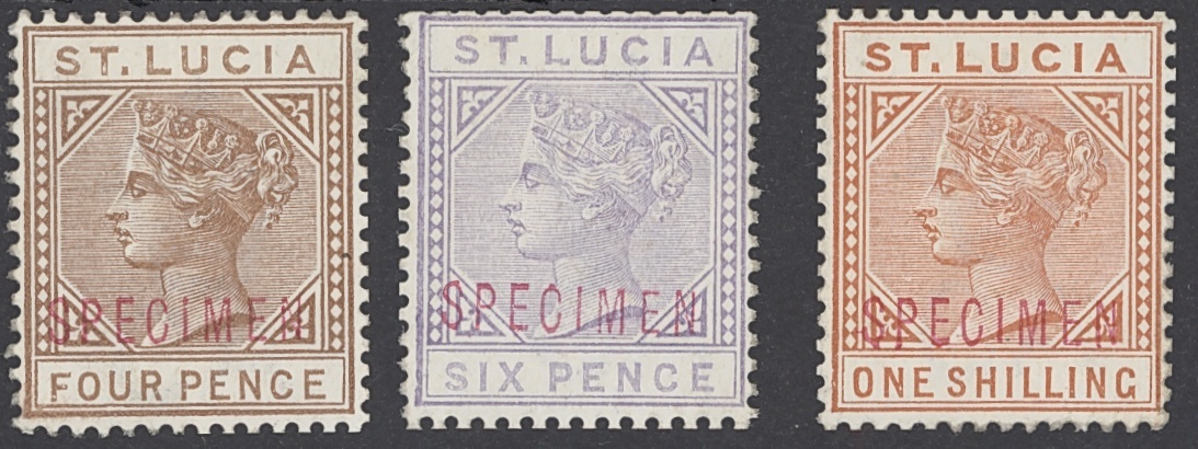 1883-86 4d. brown, 6d. lilac and 1/- orange-brown, each handstamped