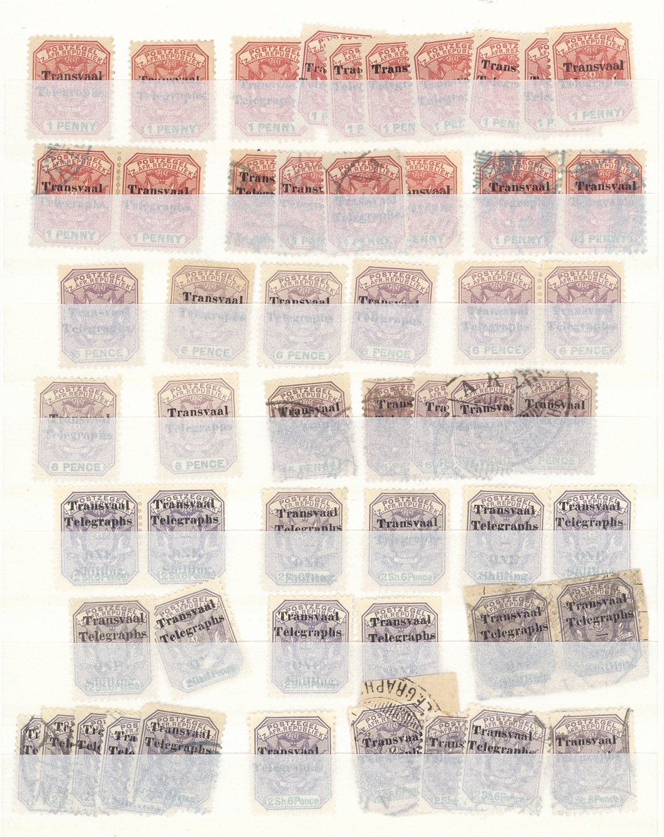 1901 (Sept.-Oct.) 1d. (10), 6d. (8 with a pair), 1/- on 2/6d. (10) and 2/6d. unused or with part to large part original gum, and 1d. (8 with two pairs), 6d. (5), 1/- on 2/6d. (5 with two on a Telegraph form fragment) and 2/6d. (4, one on Telegraph form piece);  a few small imperfections with the paper of these delicate stamps though generally good to fine. S.G. T1-4, £2,280