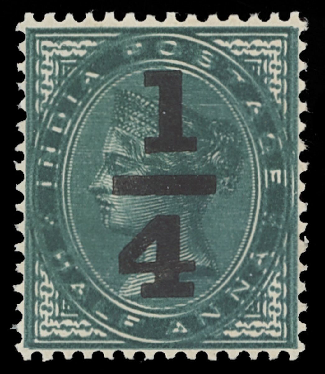 1898 (Oct.) "¼" on ½a. blue-green, variety double impression of stamp, fine mint. S.G. 110b, £750. Photo