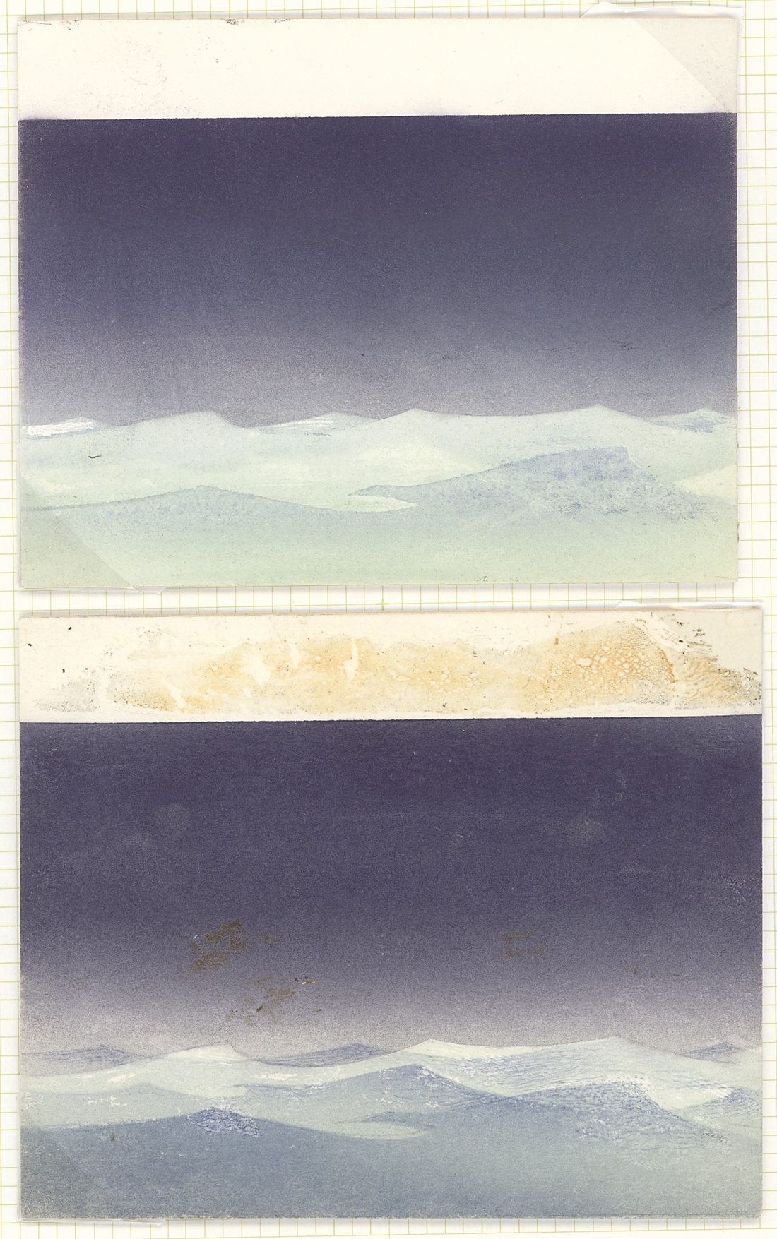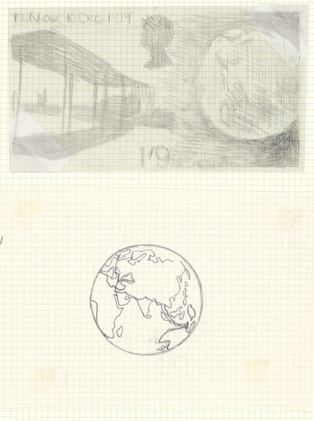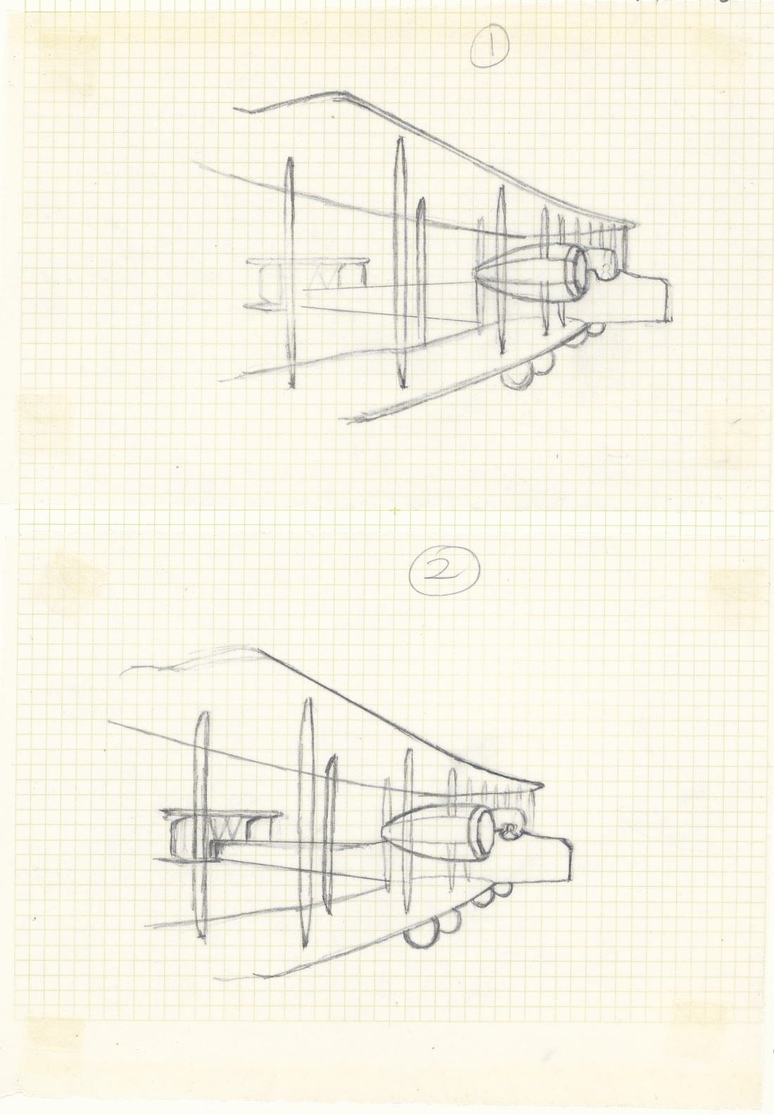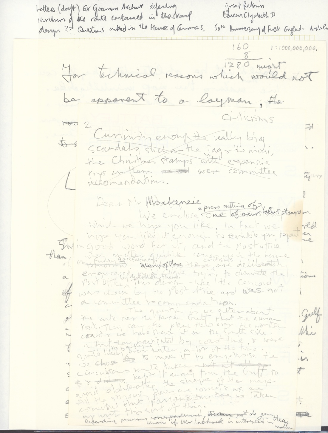 1/9d. Vickers FB-27 Vimy aircraft and globe, a selection of twenty four pencil on tracing paper sketches illustrating the development of the design, also two hand-painted essays depicting the ocean and a draft letter by the artist defending criticism of the route contained in the design