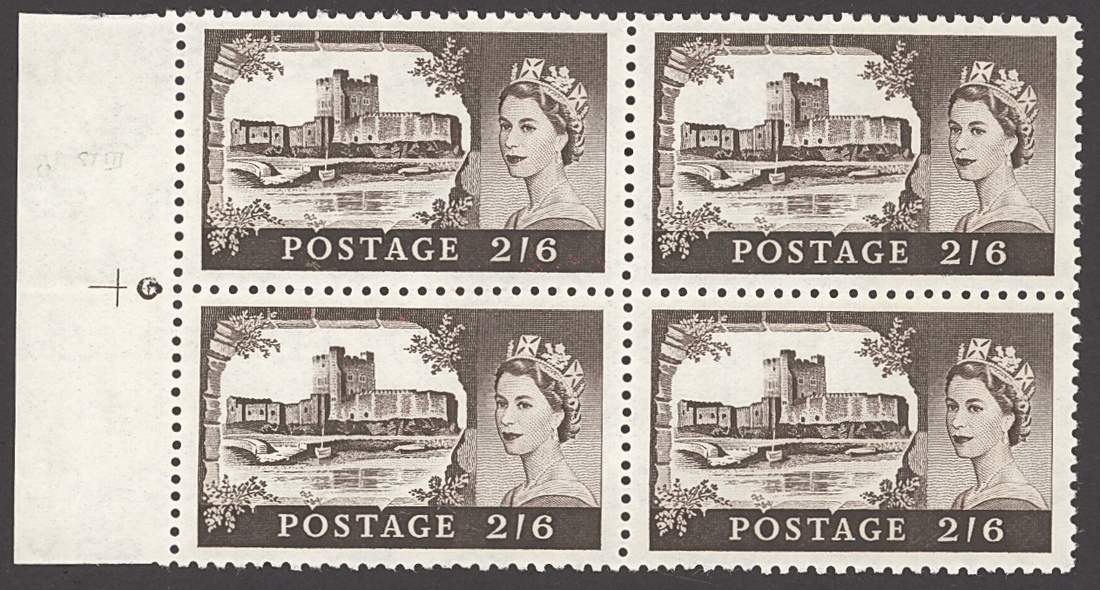 2/6d. to £1, set in unmounted mint blocks of four, the 5/- to £1 from the lower left corners of the sheet (without two plate dots), fine. S.G. 595-598. £780+