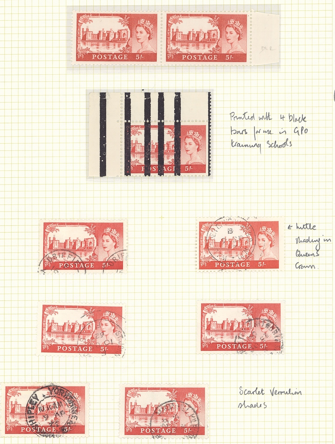 Mint and used collection on pages, including mint 2/6d. (74) with blocks of 4 (6) and 12 (3), 5/- (13), 10/- (9) with block of four, £1 (2), set with Post Office training bars, covers, etc.; chiefly fine. S.G.595-598