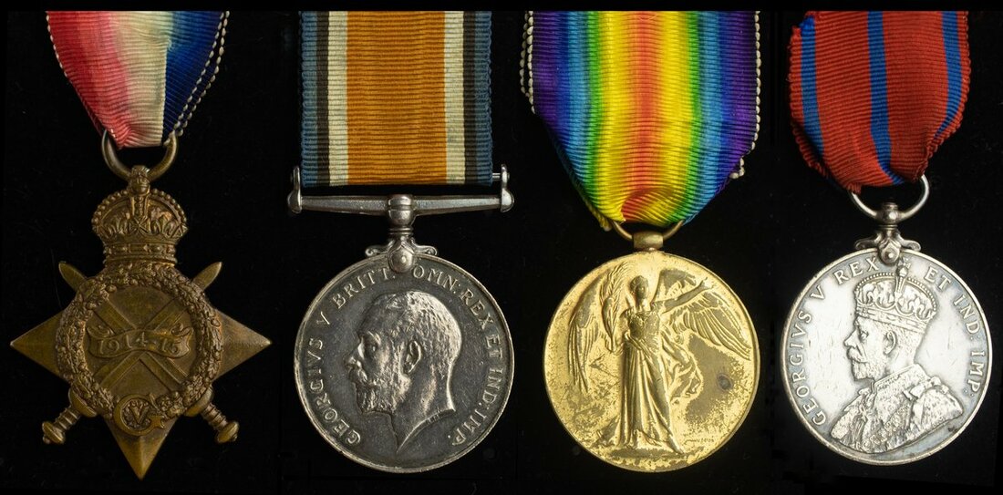 Richard Walter Scott served in the Metropolitan Police before the Great War. Upon its outbreak, he enlisted in the London Scottish on 5 December 1914 and served in France from 4 July 1915, being wounded in action by gunshot wound to the hand on 25 September 1915. Following treatments to remove shrapnel, he transferred to the Army Service Corps. Scott went on to be posted to East Africa, suffering dreadfully with his health as a result. He was discharged in 1919 with a Silver War Badge for sickness and is further noted on the Police Commissioner's Roll for those Constables entitled to Great War Medals drawn up in January 1921 (M.I.C. confirms).