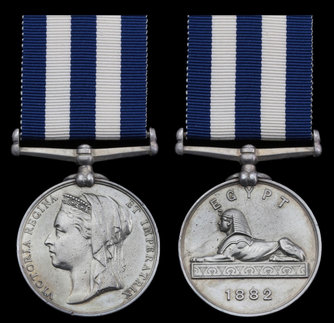 Egypt and Sudan 1882-89, dated reverse, no clasp (T. Maughan. Corpl. R.M. H.M.S. "Dee."), pitting from Star, nearly very fine